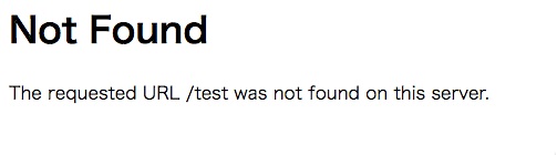 とかいて、ブラウザから ” hoge.com/test ” とやっても、Not Foundで404が返ってきます。